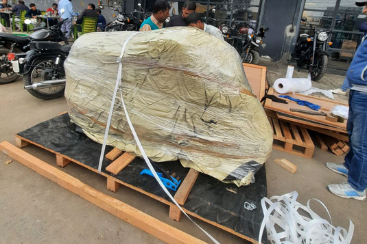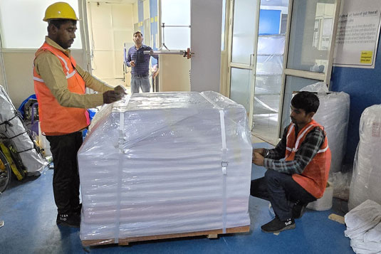 • Secure Packing: Products are carefully arranged and wrapped using stretch film, shrink wrap, straps, and corner protectors for added security.